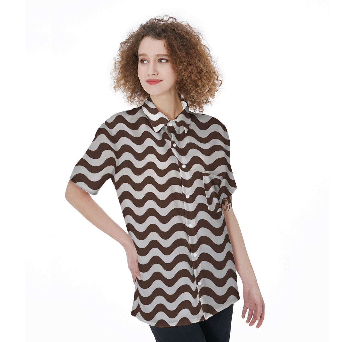 Looking for a unique women's short sleeve shirts? Check out our Brown Wave Striped Print Women's Short Sleeve Shirts at Grizzshopping. Our women's short sleeve shirts are handcrafted to the highest quality standards that custom made for you