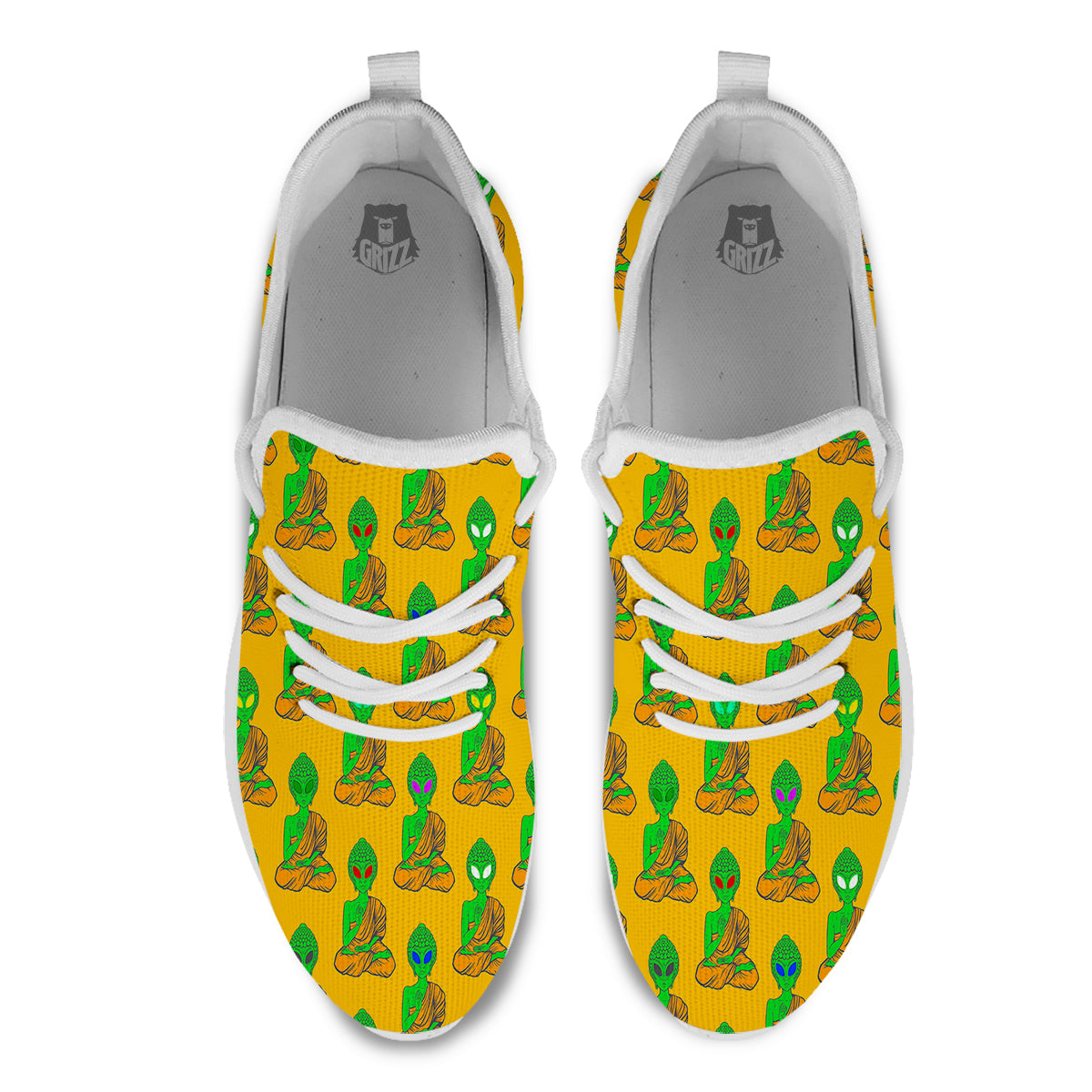 Buddha Alien Psychedelic Print Pattern White Athletic Shoes