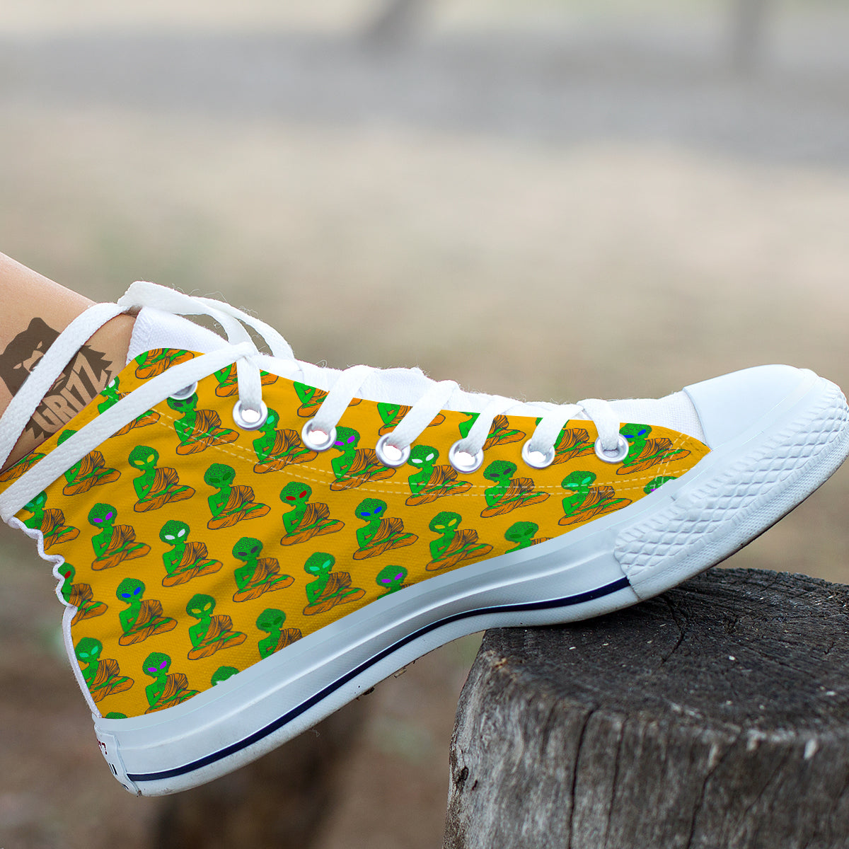Buddha Alien Psychedelic Print Pattern White High Top Shoes