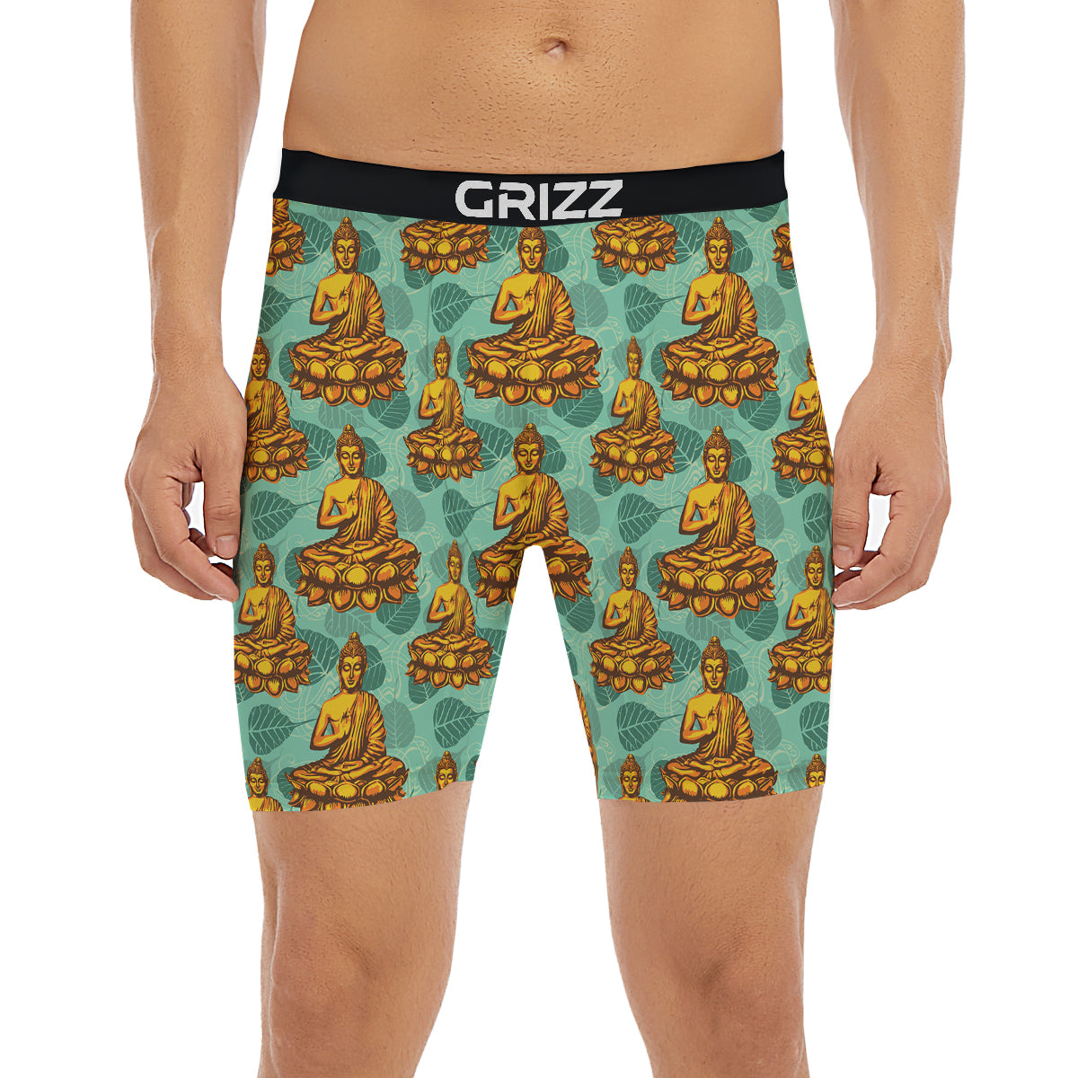 Buddha Sits On The Leaf Print Pattern Boxer Briefs