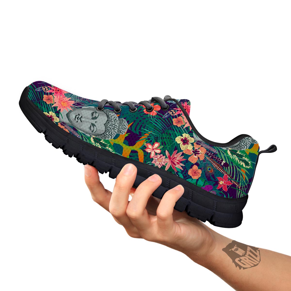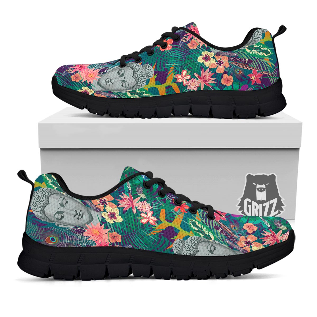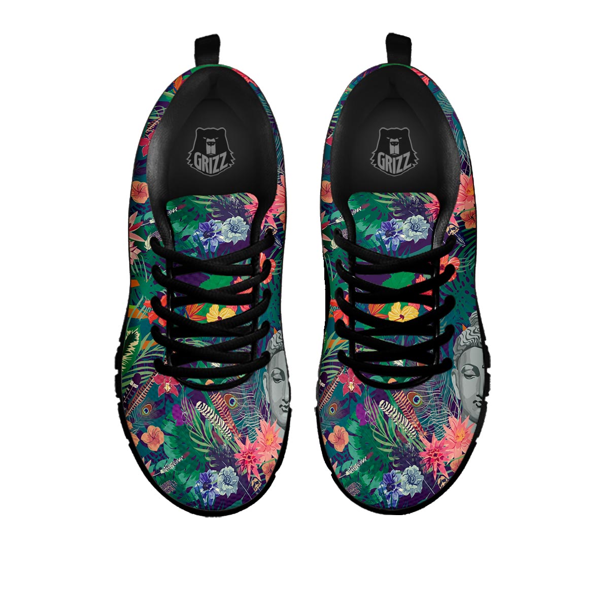 Looking for a unique sneaker? Check out our Buddha Tropical Print Pattern Black Sneakers at Grizzshopping. Our sneaker are handcrafted to the highest quality standards that custom made for you