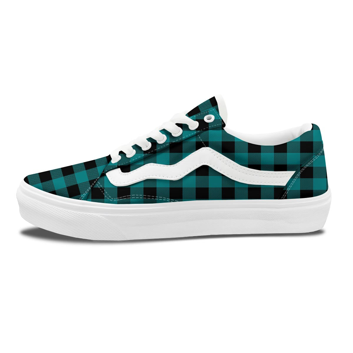 Buffalo Check Black And Teal Print Pattern Skate Shoes