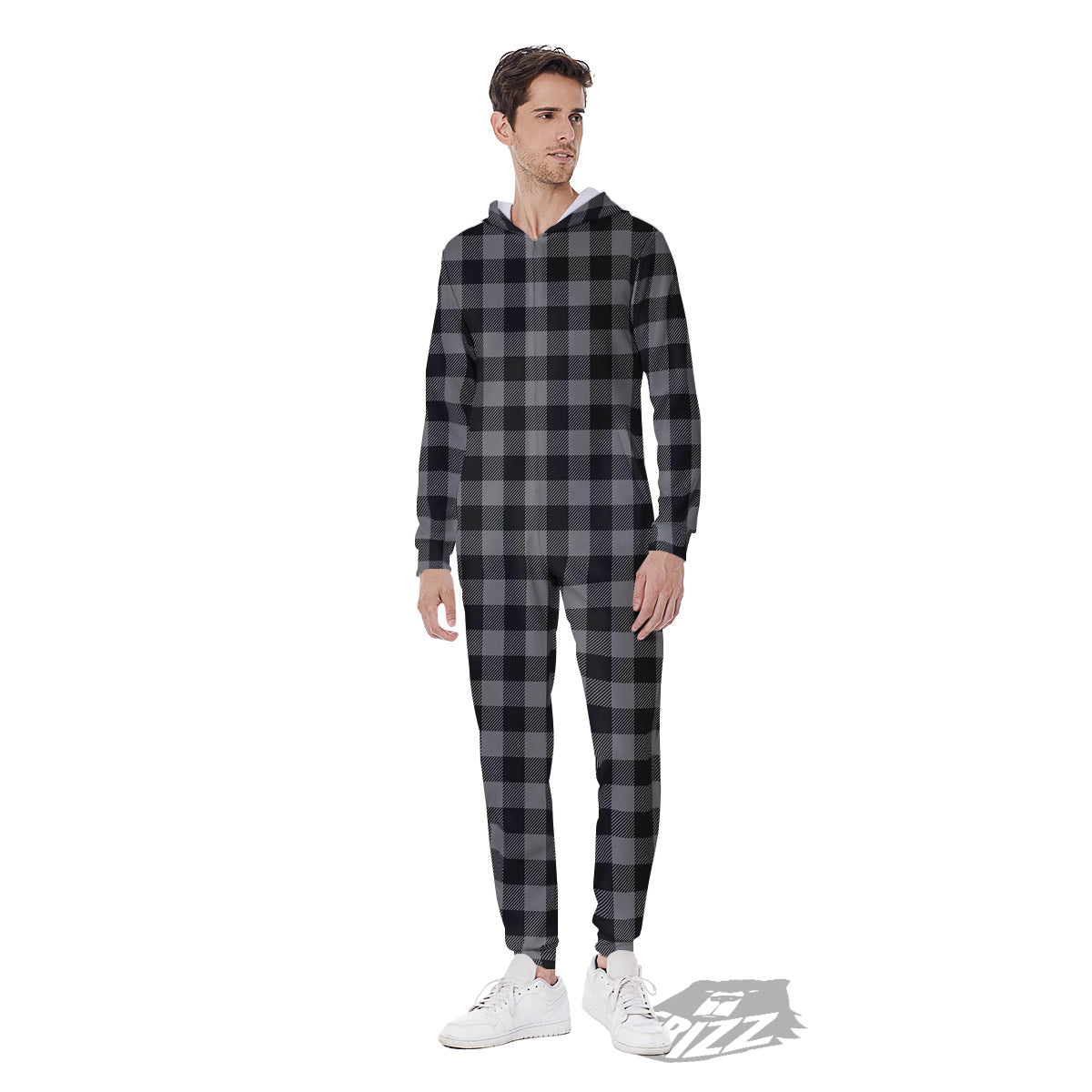Buffalo Check Dark Grey And Black Print Men's Jumpsuit
