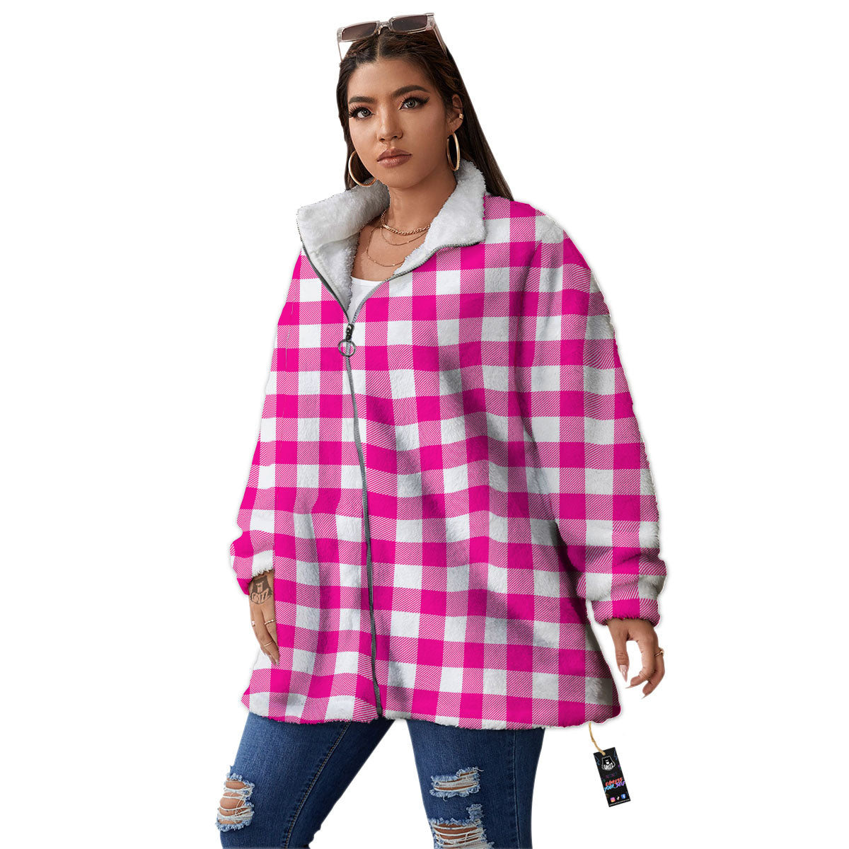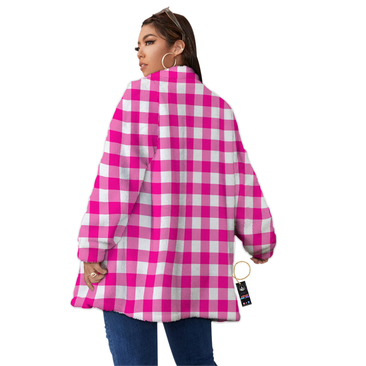 Buffalo Check Pink And White Print Women's Sherpa Jacket