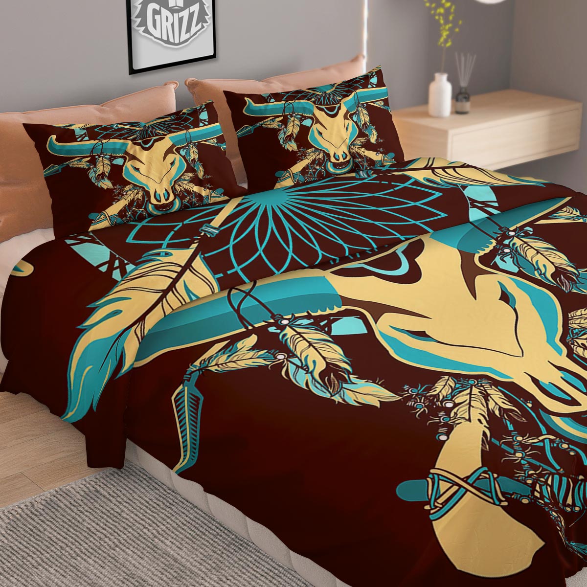 Looking for a unique duvet cover? Check out our Bull Skull Indian Tribal Print Duvet Cover Bedding Set at Grizzshopping. Our duvet cover are handcrafted to the highest quality standards that custom made for you