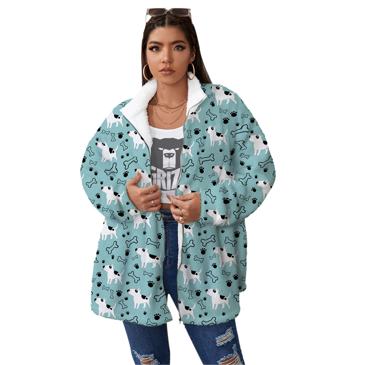 Bull Terrier Laurel Green Print Pattern Women's Sherpa Jacket