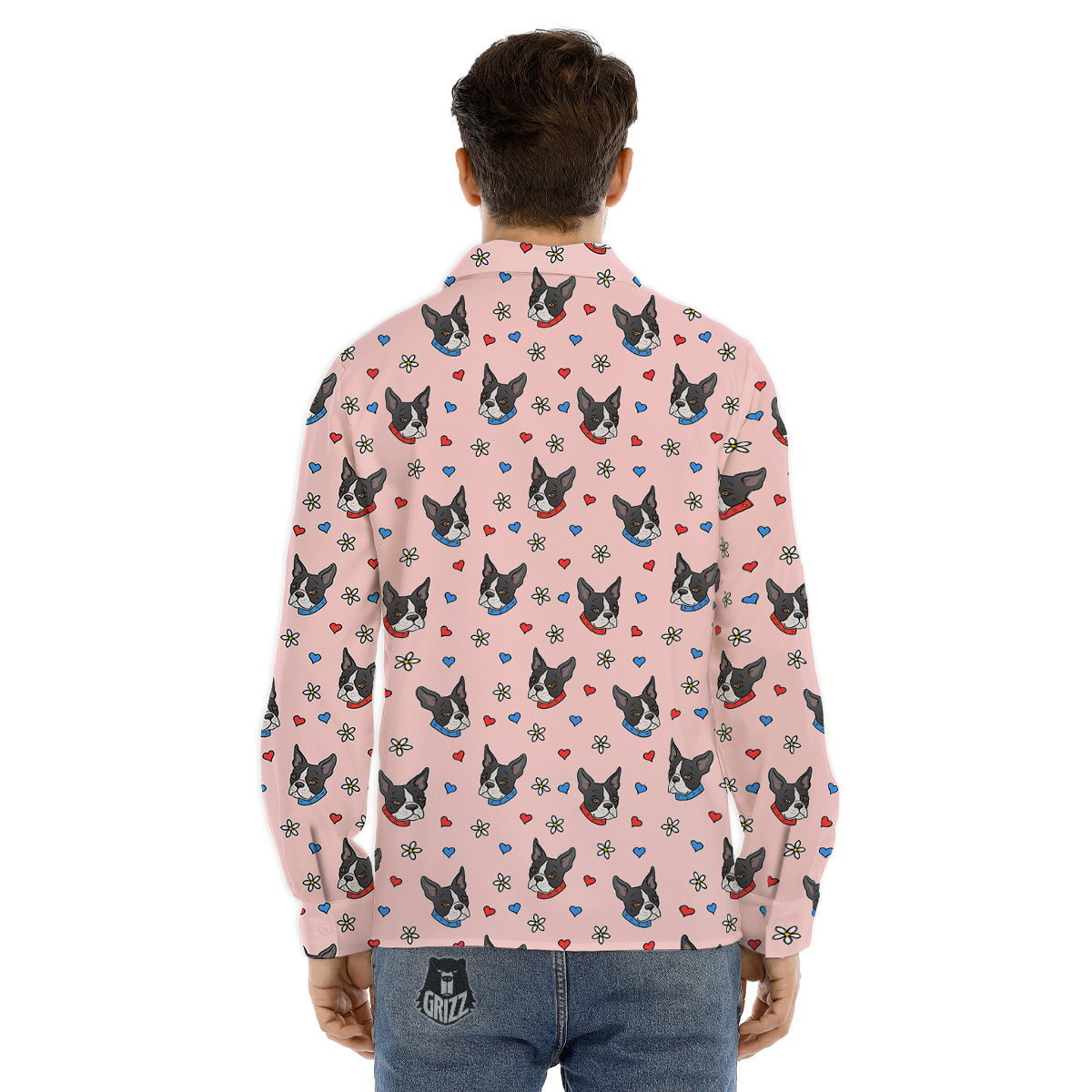 Bull Terrier Pink Print Pattern Men's Dress Shirts