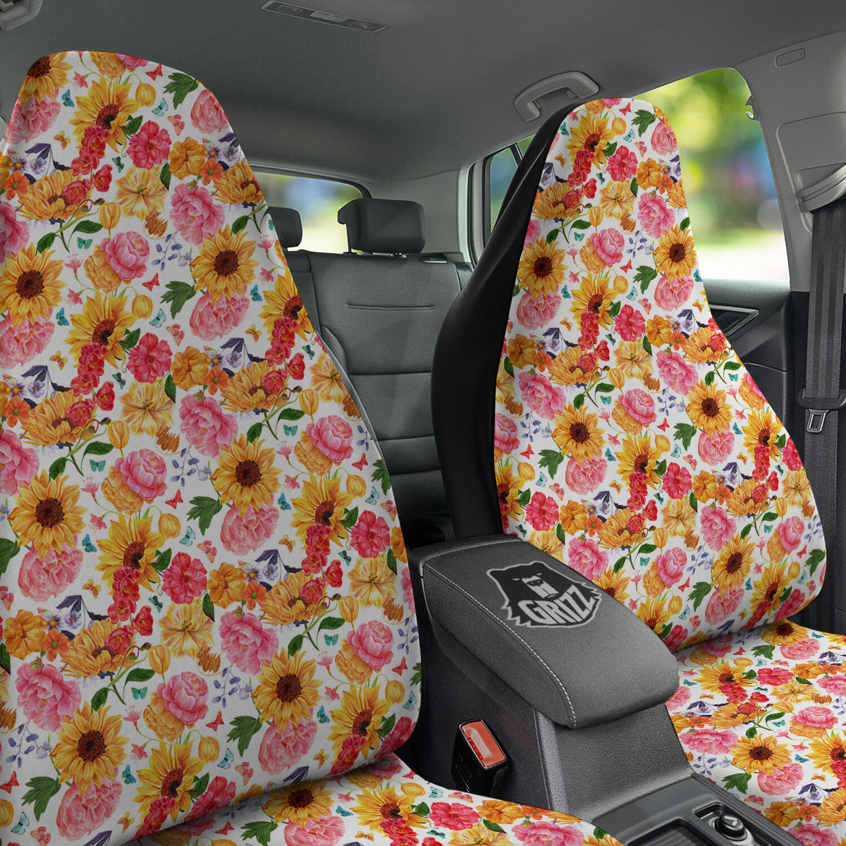 Butterfly Sunflowers Peonies Print Pattern Car Seat Covers