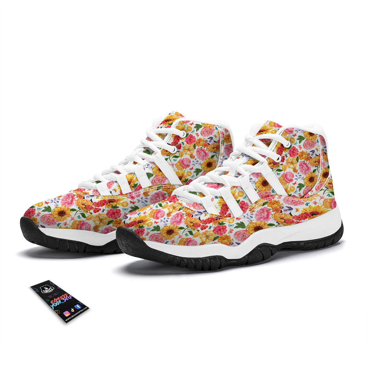 Butterfly Sunflowers Peonies Print Pattern White Bball Shoes