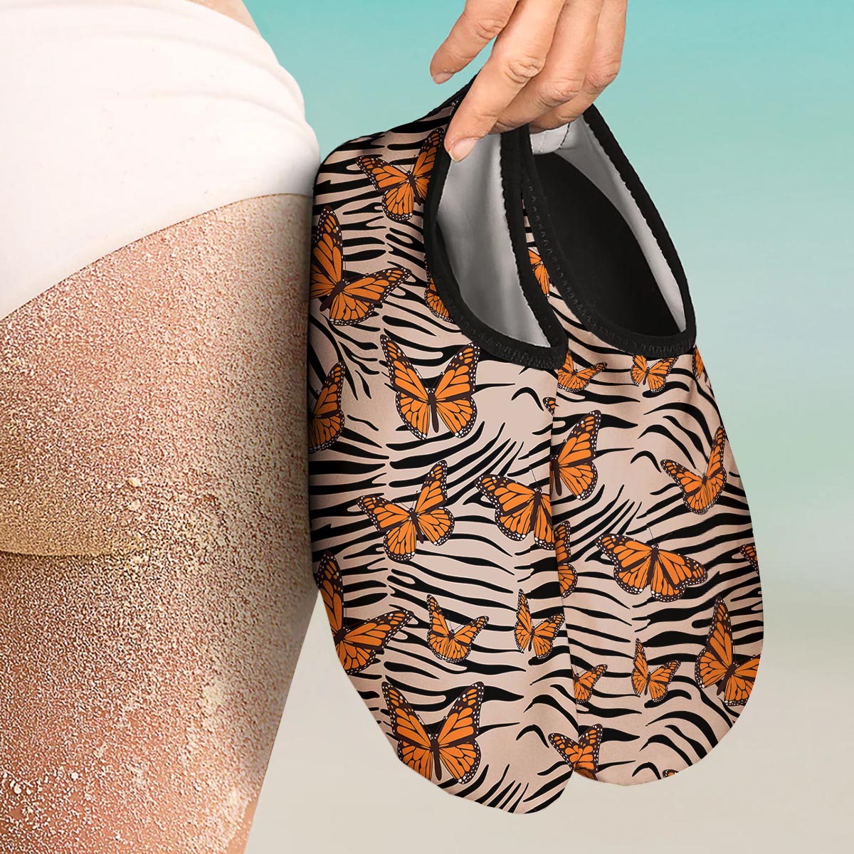Butterfly Tiger Monarch Print Pattern Water Shoes