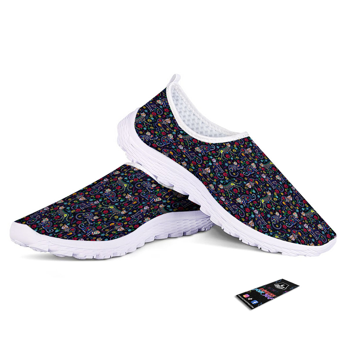 Calavera Cat Day Of The Dead Print Pattern Nurse Shoes