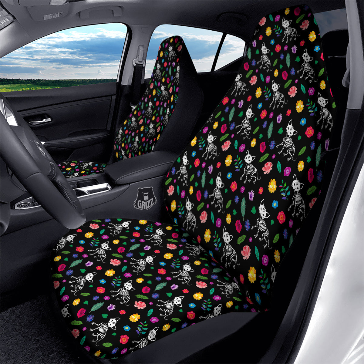 Looking for a unique car seat cover? Check out our Calavera Cat Skeleton Print Pattern Car Seat Covers at Grizzshopping. Our car seat cover are handcrafted to the highest quality standards that custom made for you Constructed with high quality polyester micro-fiber fabric for maximum durability and comfort.