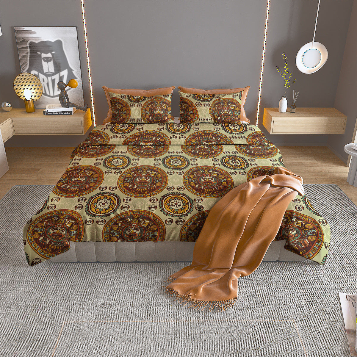 Calendar Aztec Vintage Print Pattern Duvet Cover Bedding Set
