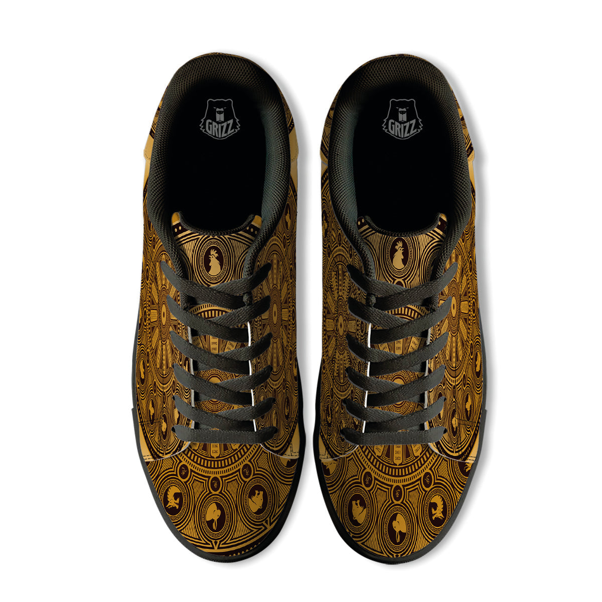 Calendar Signs Chinese Zodiac Print Black Low Top Sneakers