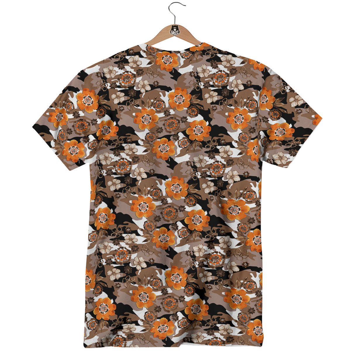 Camo Flower Brown Hawaiian Print Pattern T-Shirt