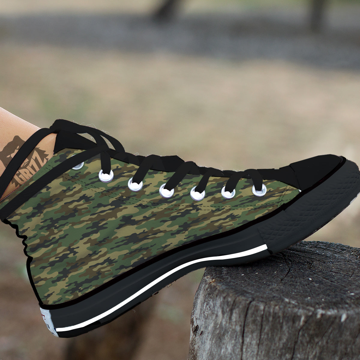 Looking for a unique shoes? Check out our Camouflage Classic Green Print Black High Top Shoes at Grizzshopping. Our shoes are handcrafted to the highest quality standards that custom made for you