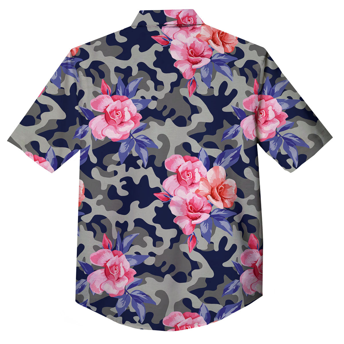 Camouflage Flower Pink Rose Print Button Up Shirt