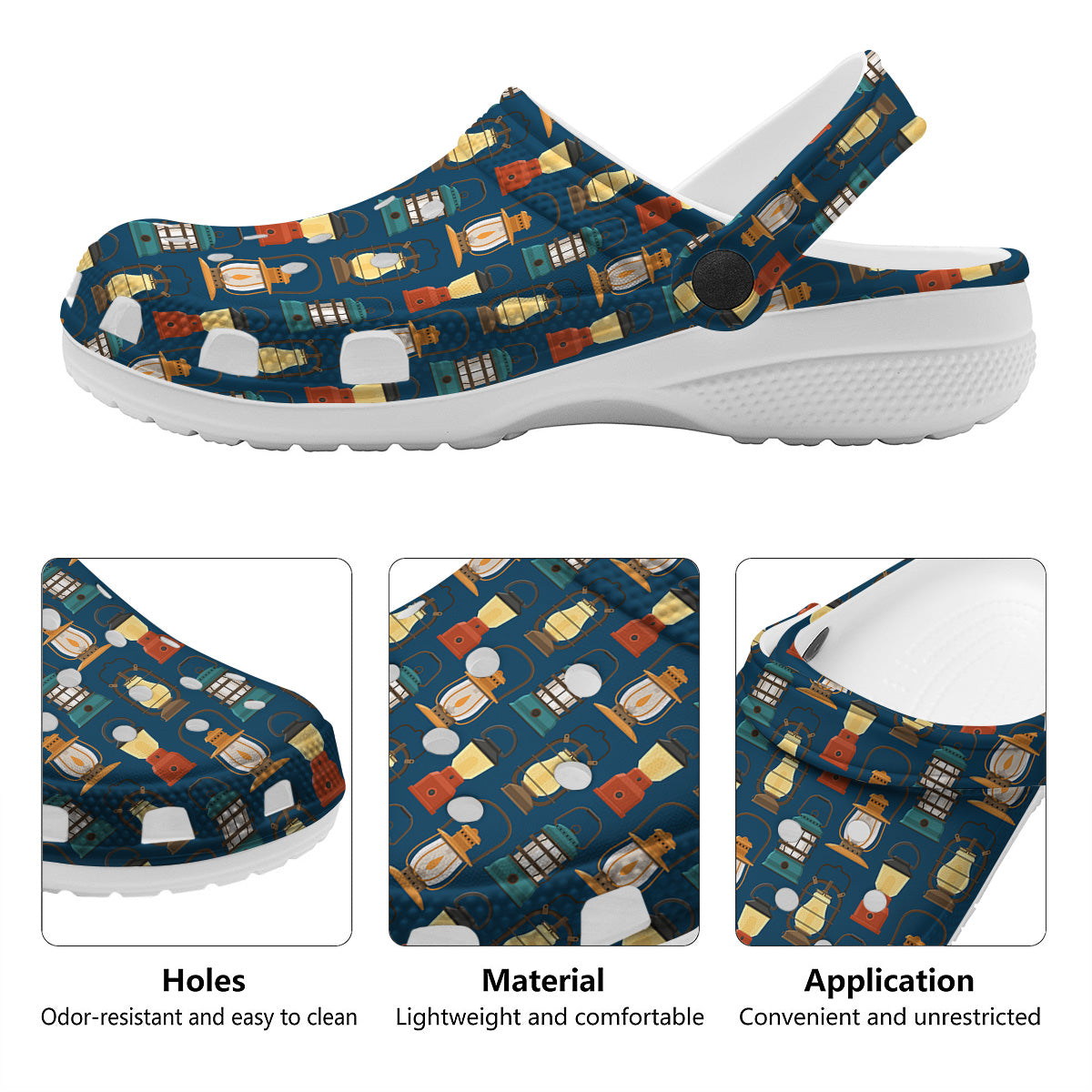 Looking for unique clog? Check out our Camping Lantern Vintage Print Pattern Clog at Grizzshopping. Our clog are handcrafted to the highest quality standards and custom-made for you