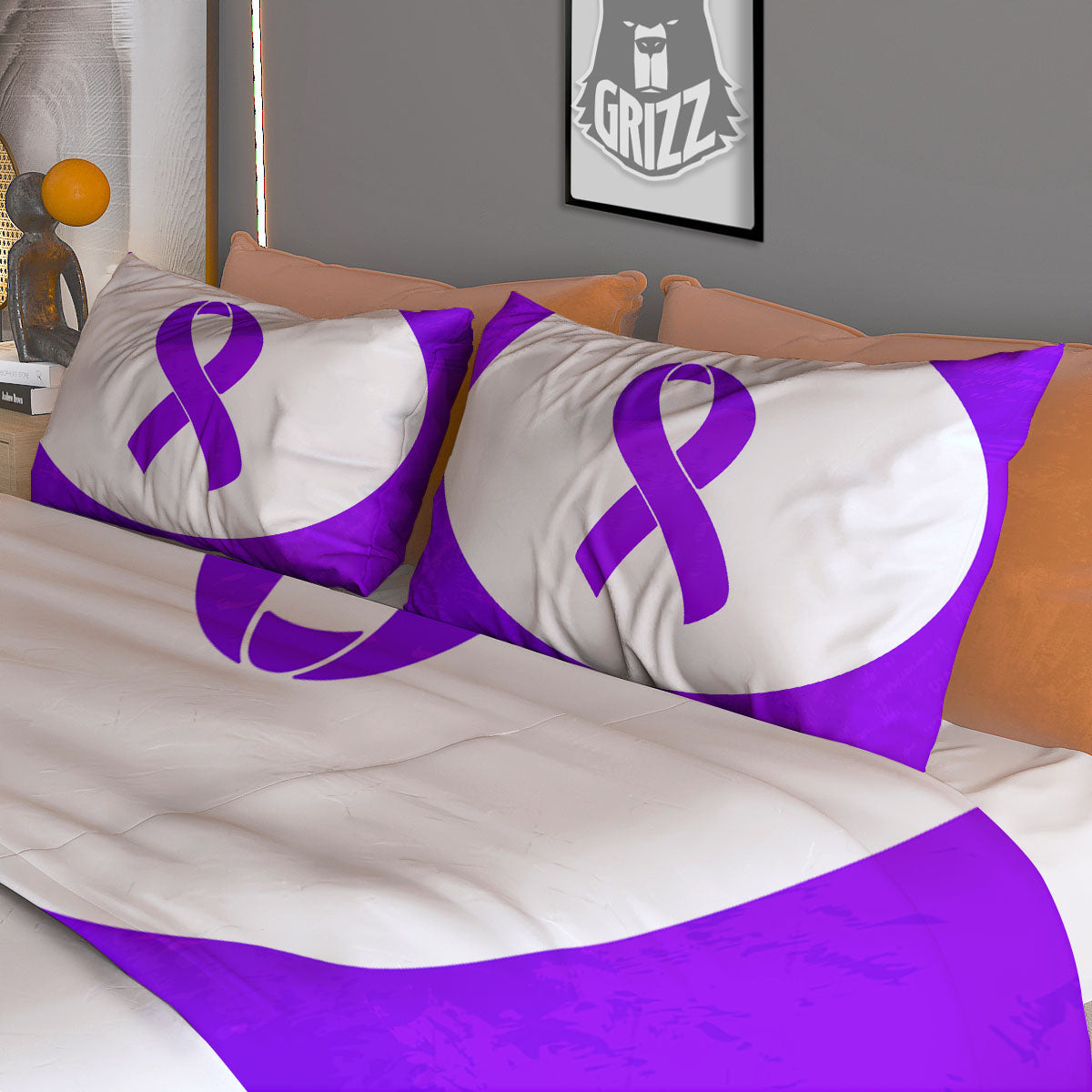 Cancer Awareness Ribbon Purple Print Duvet Cover Bedding Set