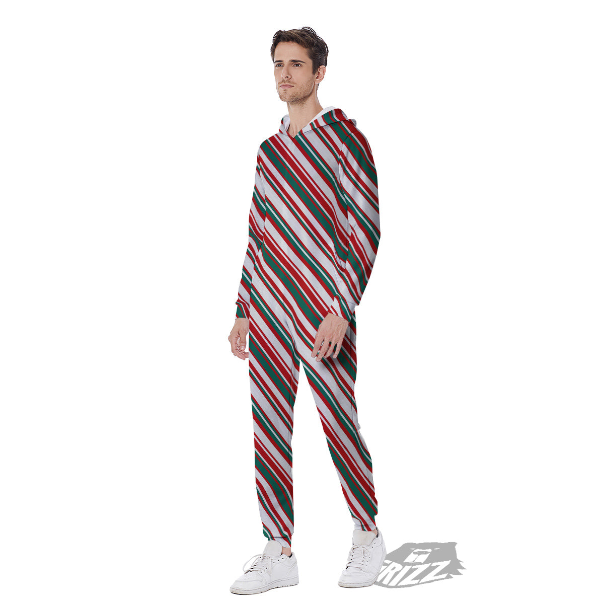Candy Cane Stripe Christmas Print Men's Jumpsuit