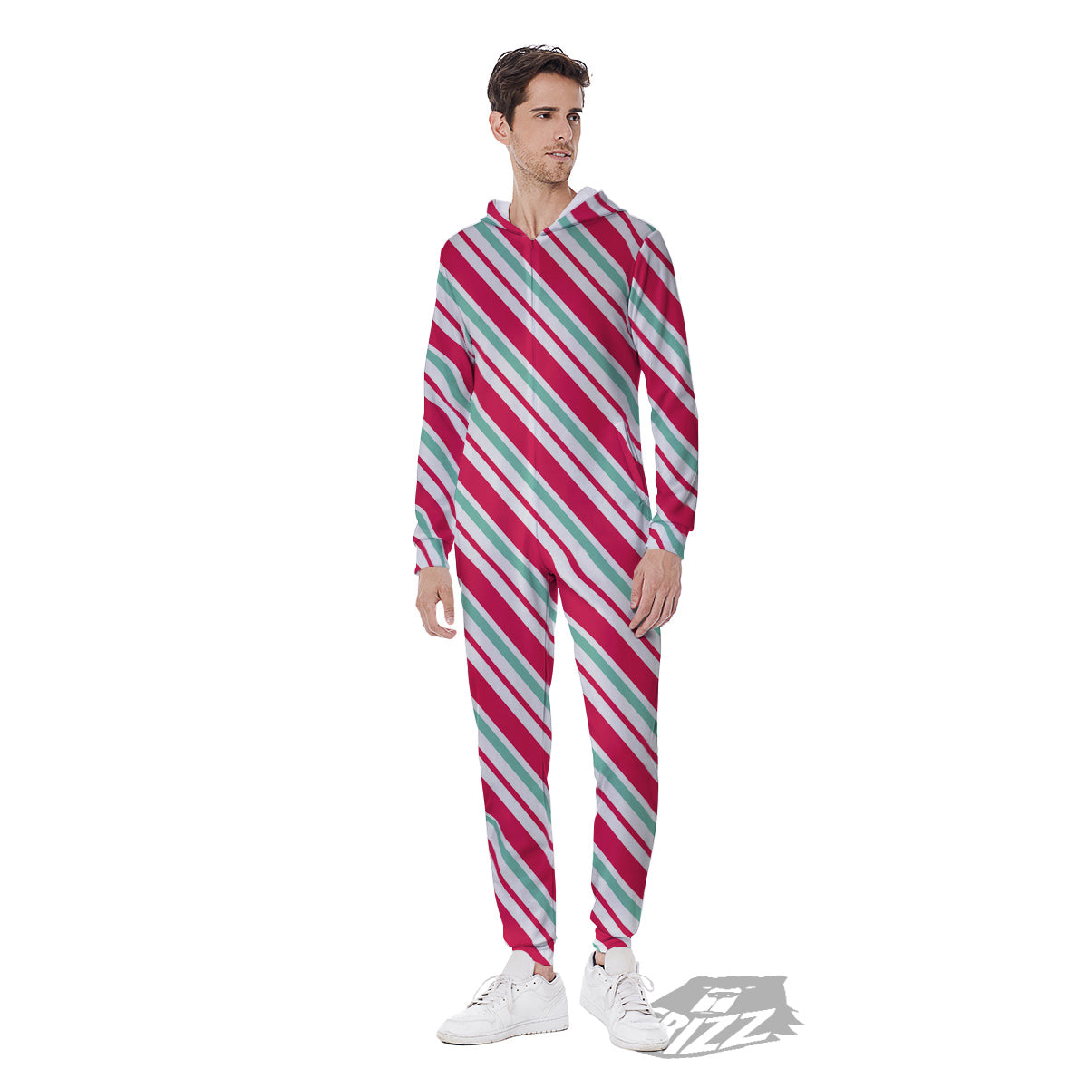 Candy Cane Striped Christmas Print Men's Jumpsuit