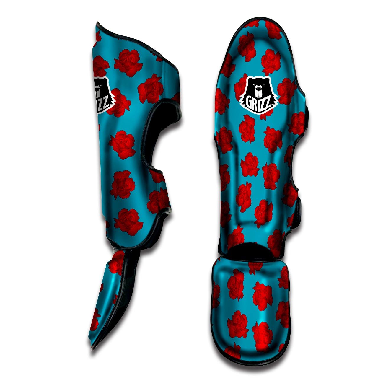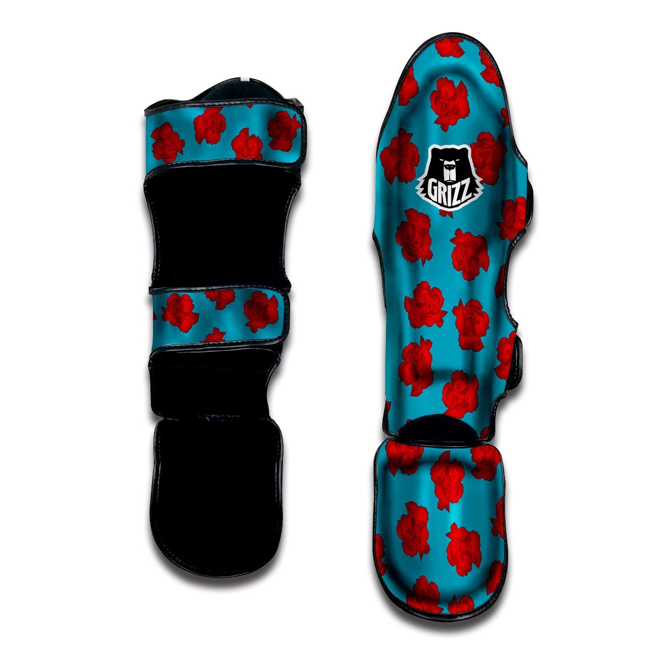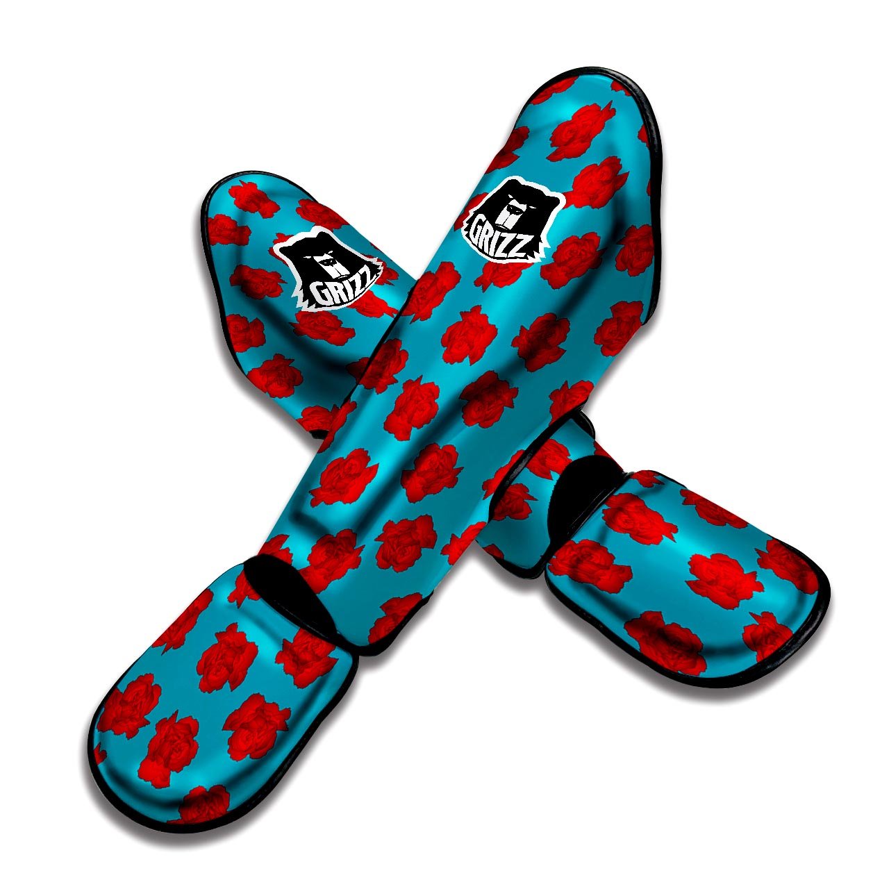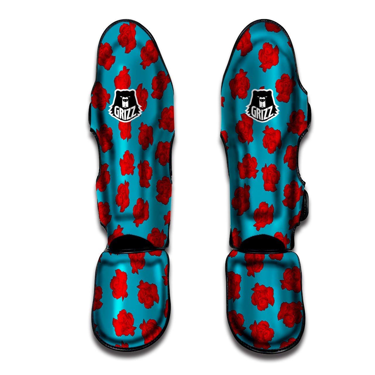 Carnation Blue And Red Print Pattern Muay Thai Shin Guards