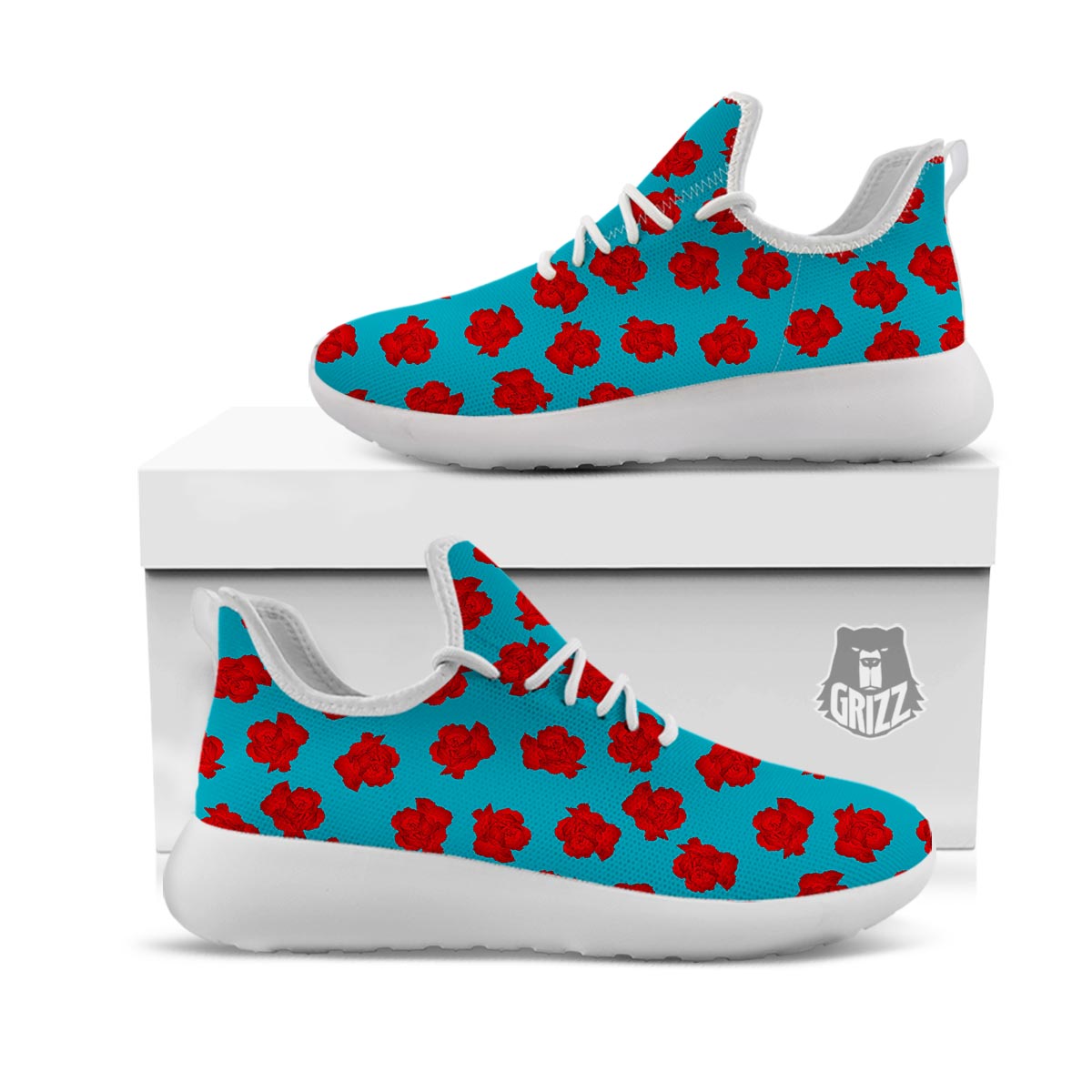 Carnation Blue And Red Print Pattern White Athletic Shoes