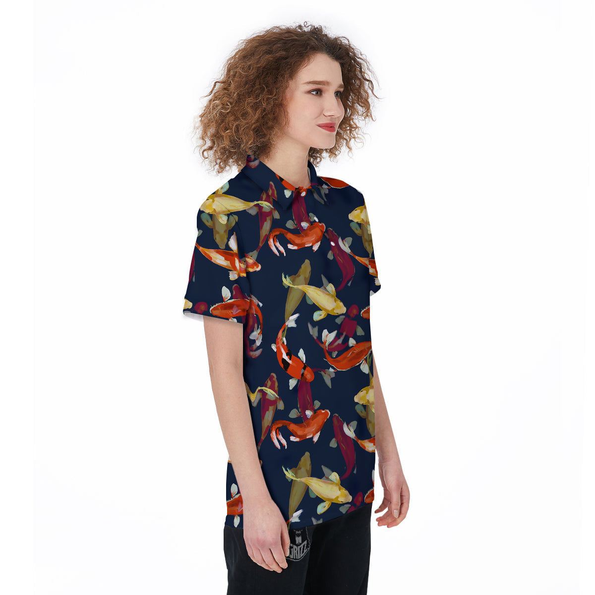 Carp Fish Koi Watercolor Print Pattern Women's Golf Shirts