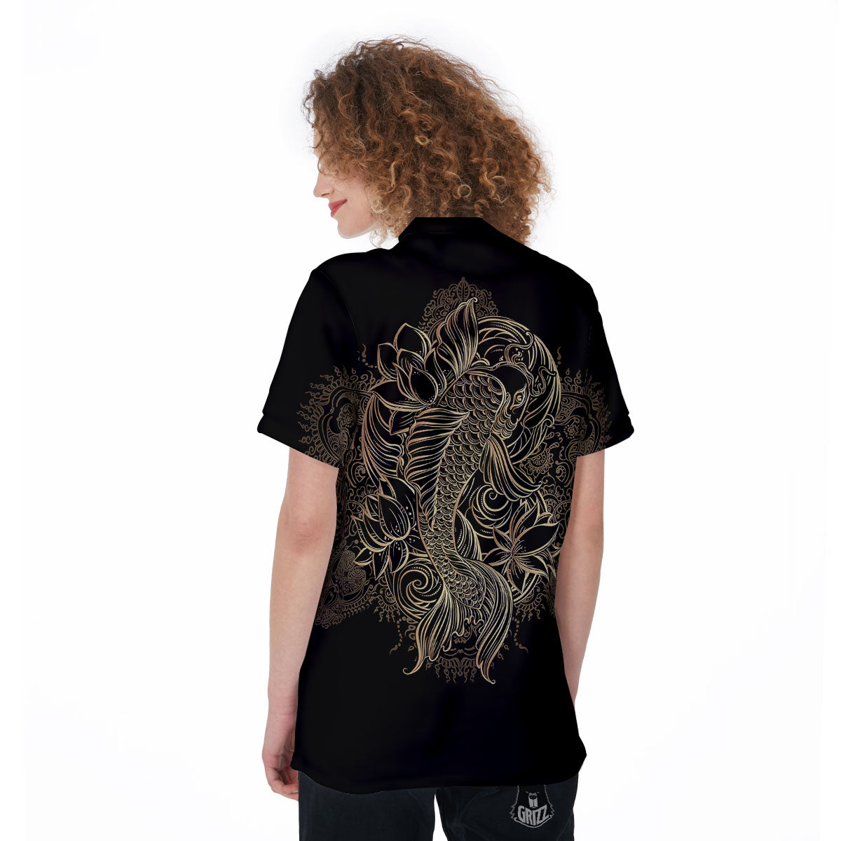 Carp Koi Fish Gold Print Women's Golf Shirts
