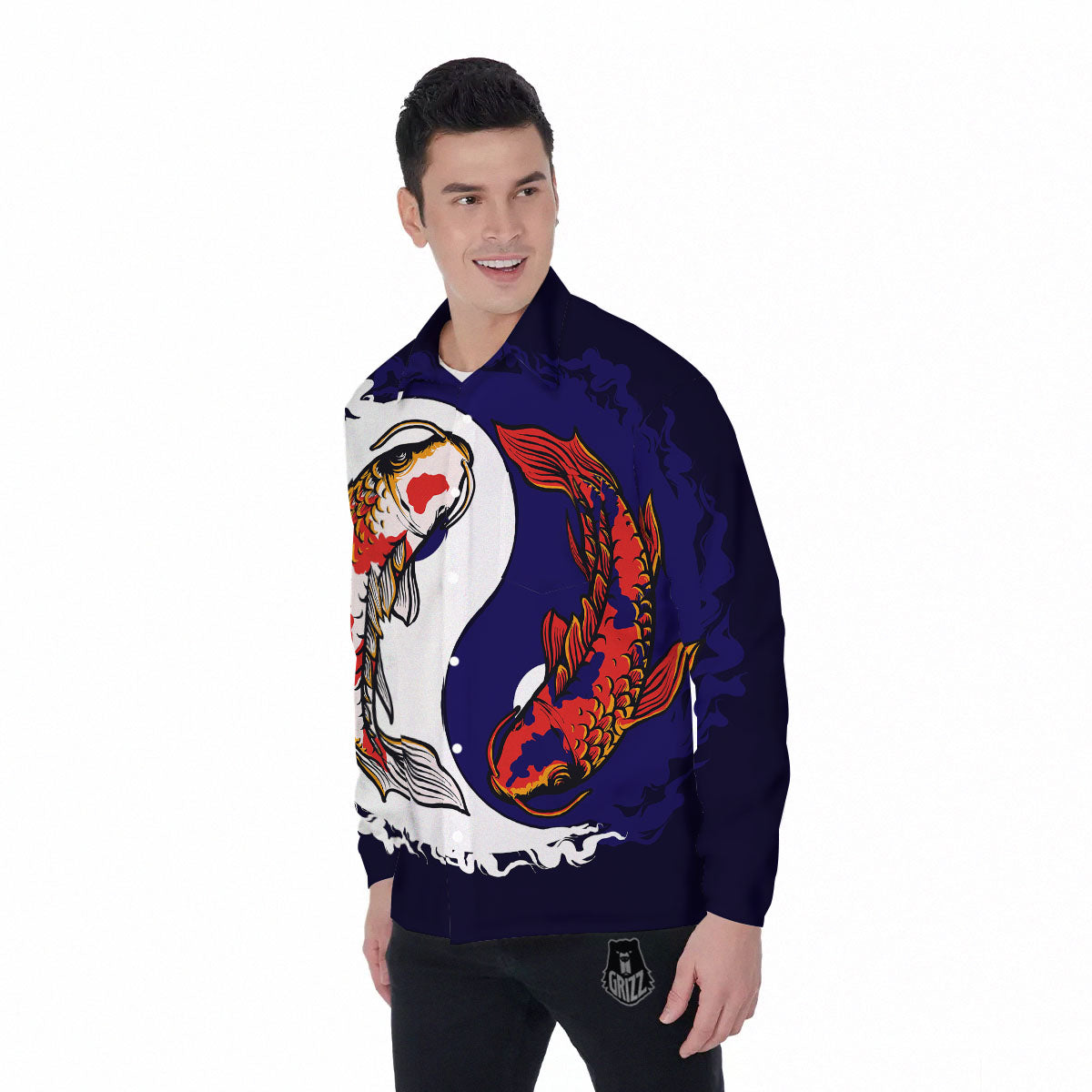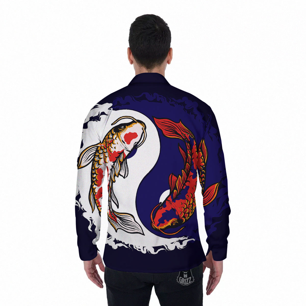 Carp Koi Fish Yin And Yang Print Men's Long Sleeve Shirts