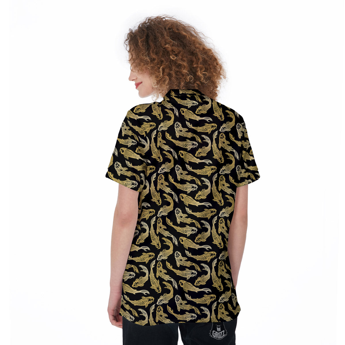 Carp Koi Golden Chinese Print Pattern Women's Golf Shirts