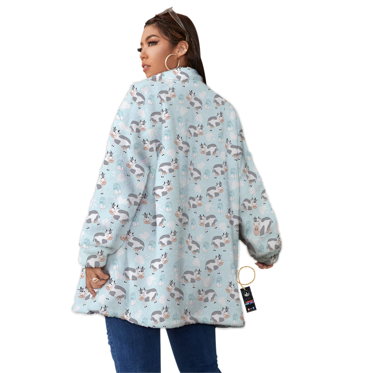 Cartoon Cows Milk Print Pattern Women's Sherpa Jacket