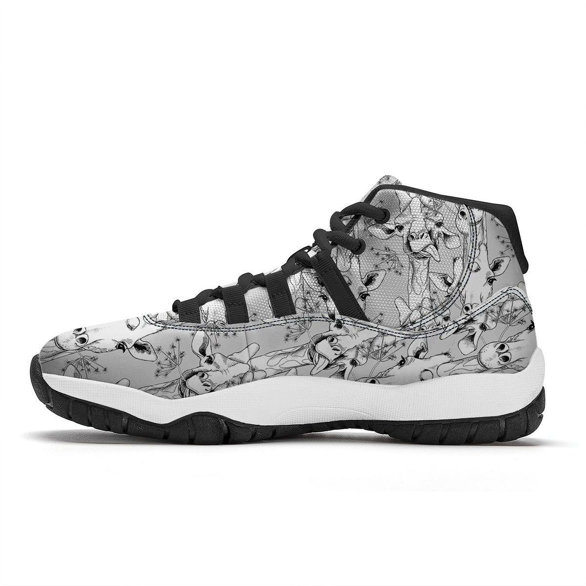 Cartoon Giraffe White And Black Print Black Bball Shoes