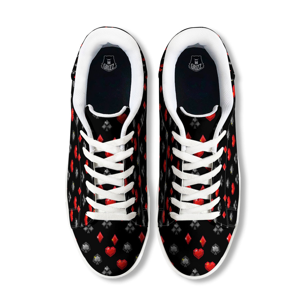 Looking for a unique low top shoes? Check out our Casino Card Suits Red Black Print Pattern White Low Top Sneakers at Grizzshopping. Our low top sneakers are handcrafted to the highest quality standards that custom made for you
