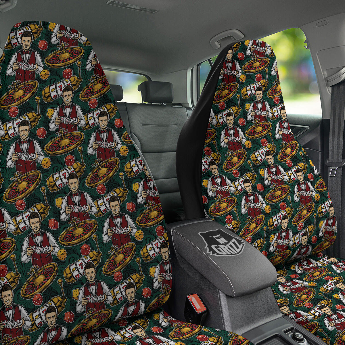 Looking for a unique car seat cover? Check out our Casino Croupier And Slot Machine Print Pattern Car Seat Covers at Grizzshopping. Our car seat cover are handcrafted to the highest quality standards that custom made for you Constructed with high quality polyester micro-fiber fabric for maximum durability and comfort.