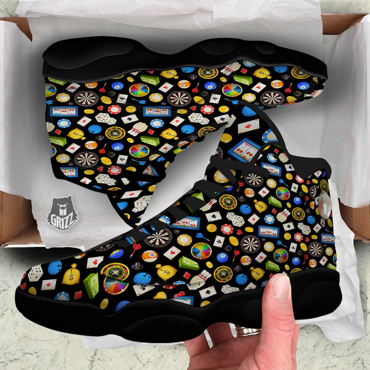 Looking for a unique basketball shoes? Check out our Casino Entertainments Print Pattern Black Basketball Shoes at Grizzshopping. Our basketball shoes are handcrafted to the highest quality standards that custom made for you