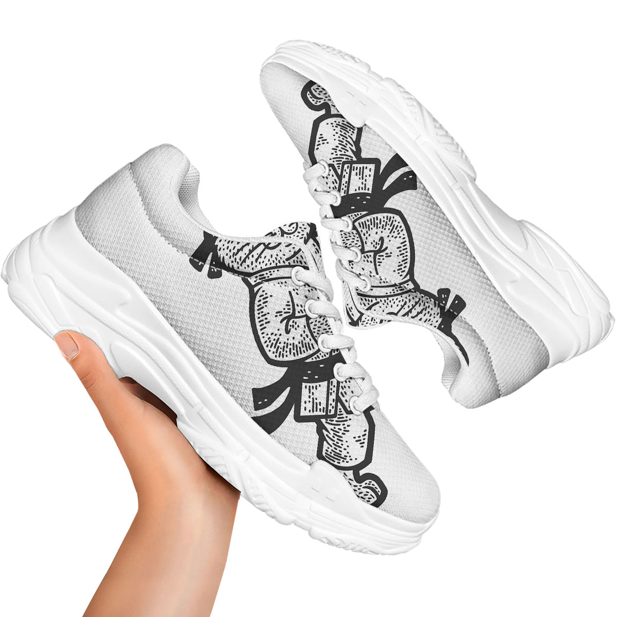 Looking for unique chunky shoes? Check out our Cat Karate Print White Chunky Shoes at Grizzshopping. Our chunky shoes are handcrafted to the highest quality standards that custom made for you