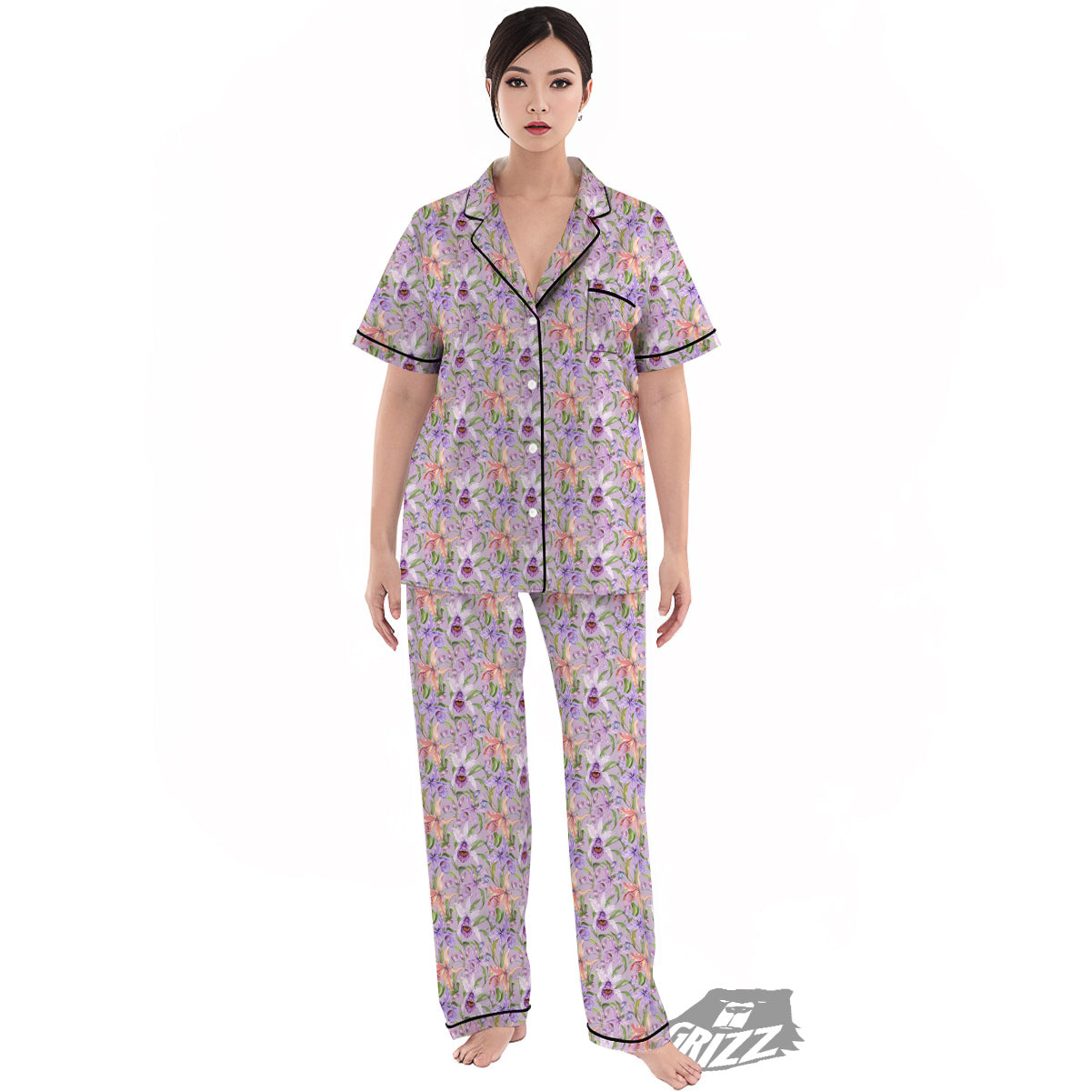 Cattleya Colorful Watercolor Print Women's Pajamas Set