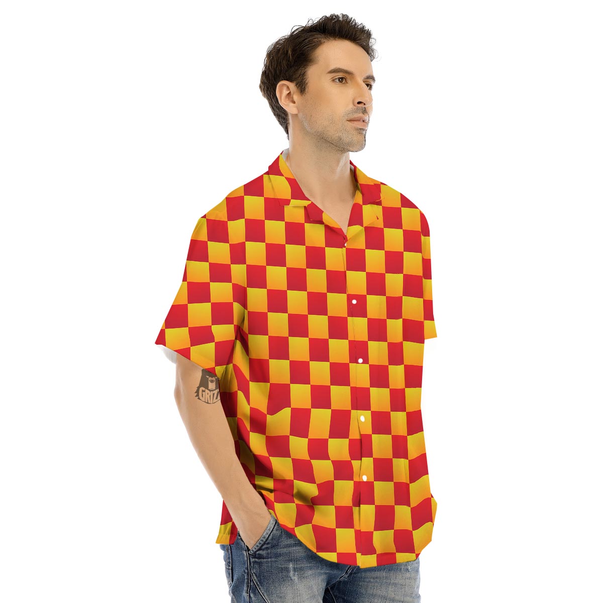 Checkered Yellow And Red Print Pattern Men's Hawaiian Shirt