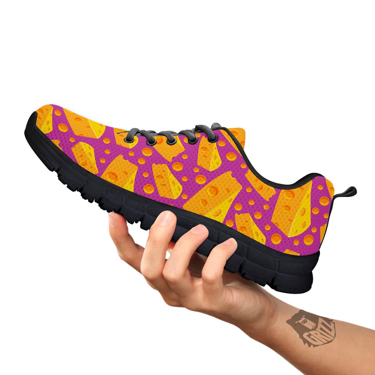 Looking for a unique sneaker? Check out our Cheese Holes And Purple Print Pattern Black Sneakers at Grizzshopping. Our sneaker are handcrafted to the highest quality standards that custom made for you