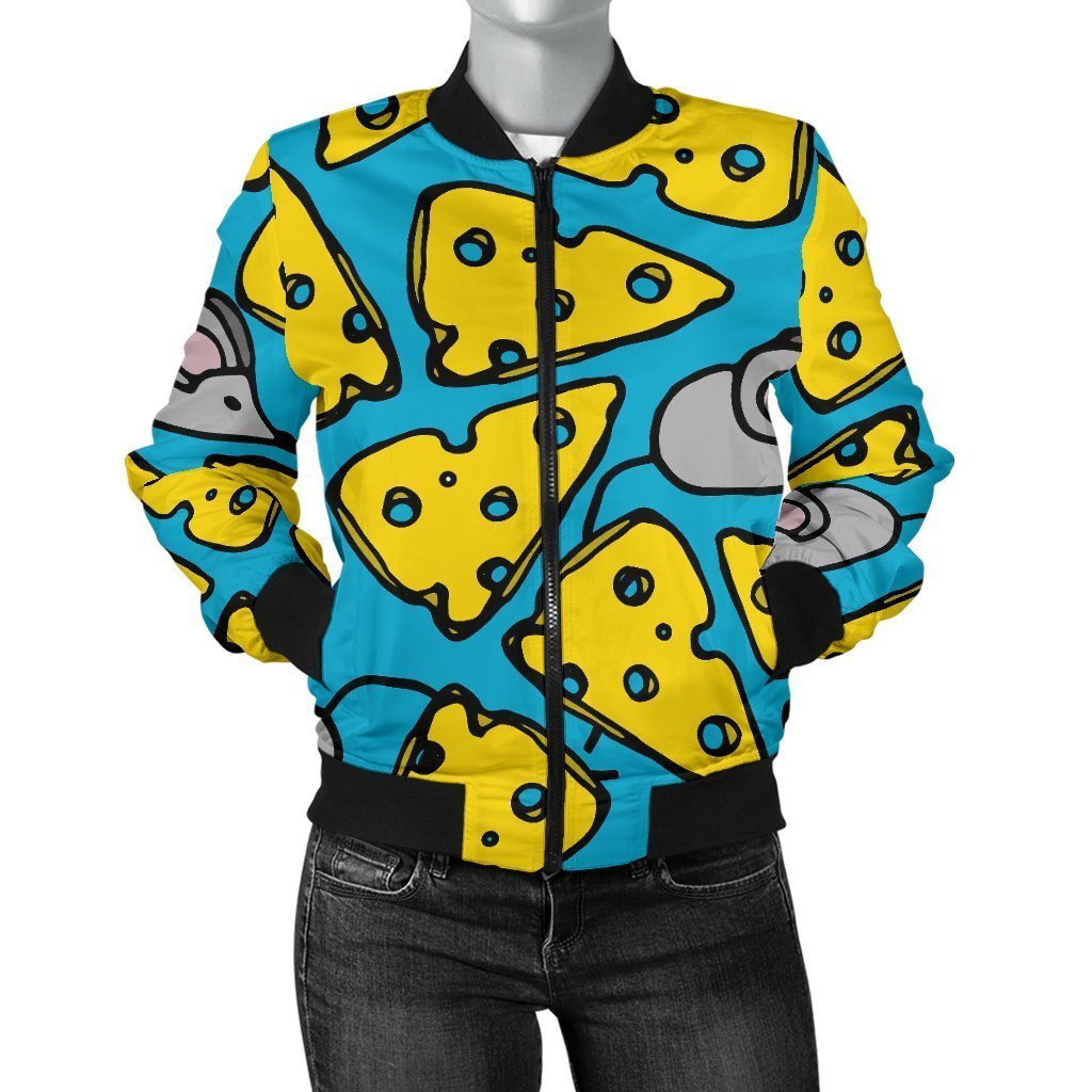 Cheese Mouse Pattern Print Women Casual Bomber Jacket