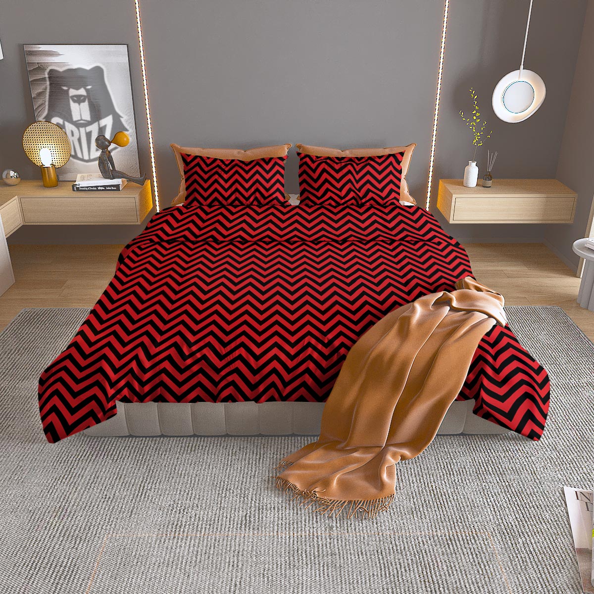 Chevron Black And Red Print Pattern Duvet Cover Bedding Set