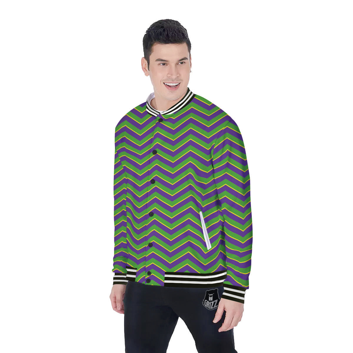 Looking for unique baseball jacket? Check out our Chevron Mardi Gras Print Pattern Baseball Jacket at Grizzshopping. Our walking baseball jacket are handcrafted to the highest quality standards and custom-made for you