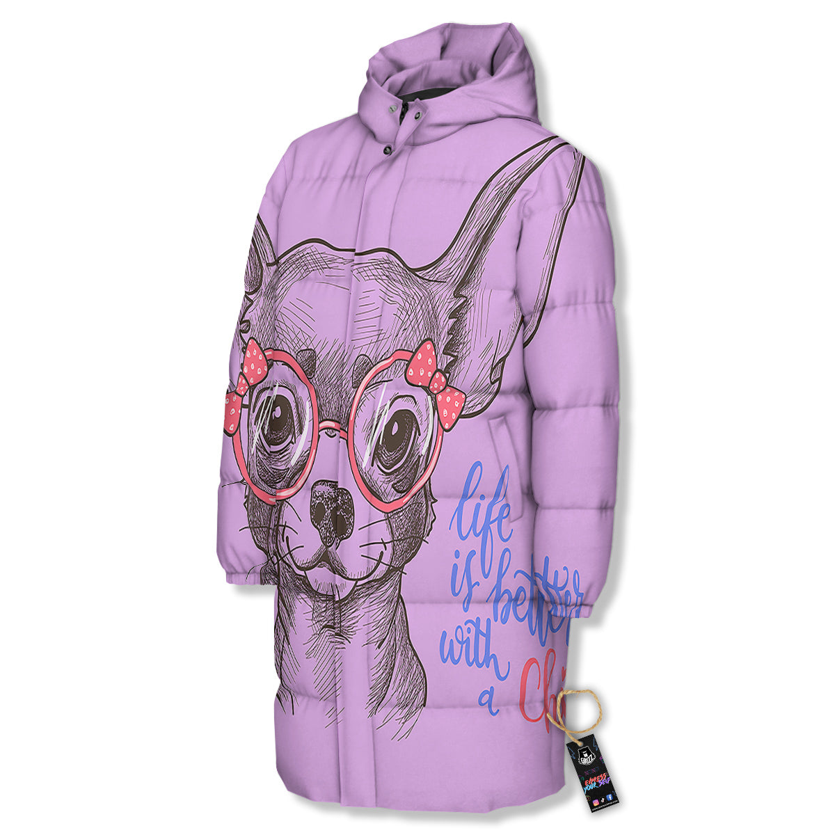 Chihuahua With Glasses Cute Print Long Down Jacket