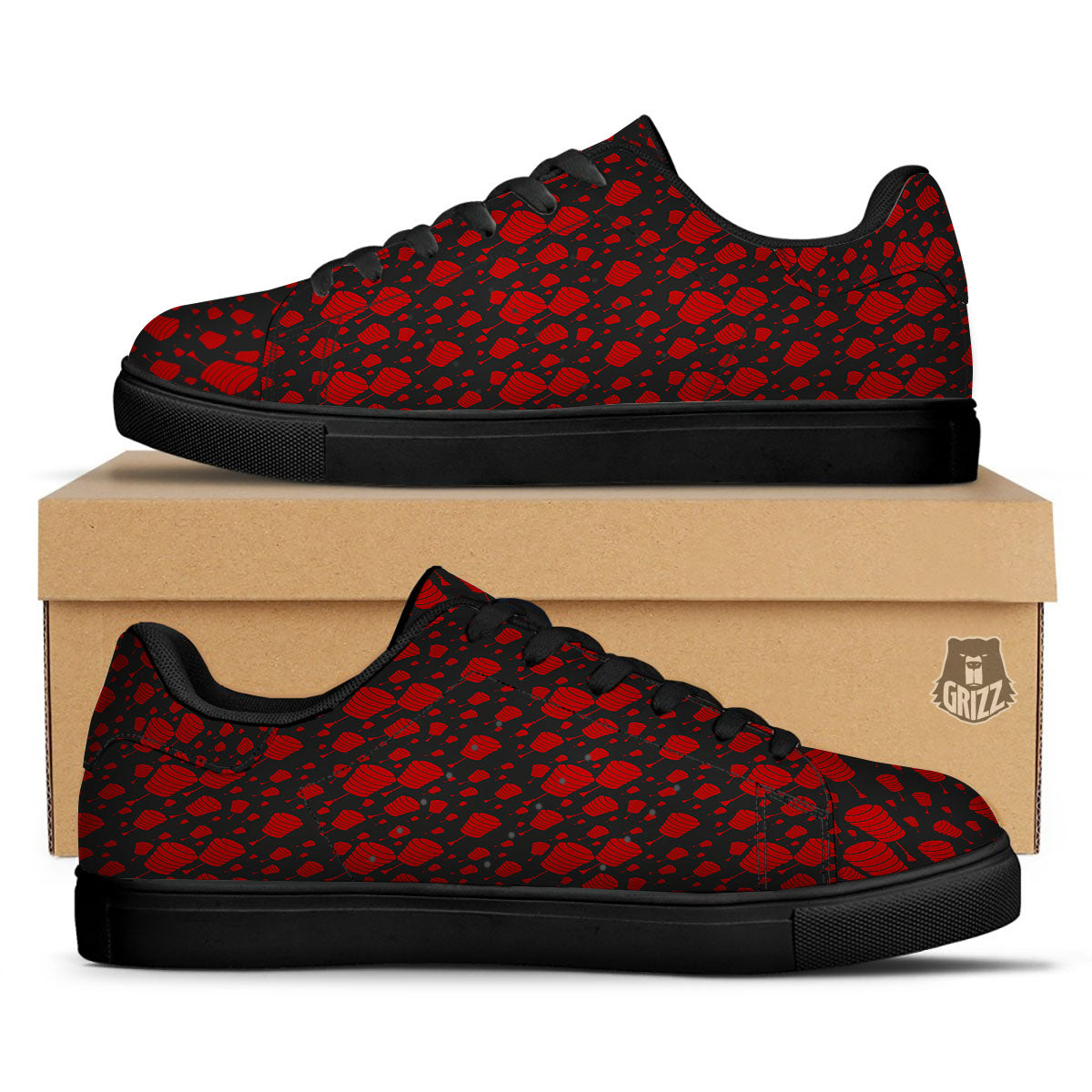 Chinese Red And Black Print Pattern Black Low Top Sneakers