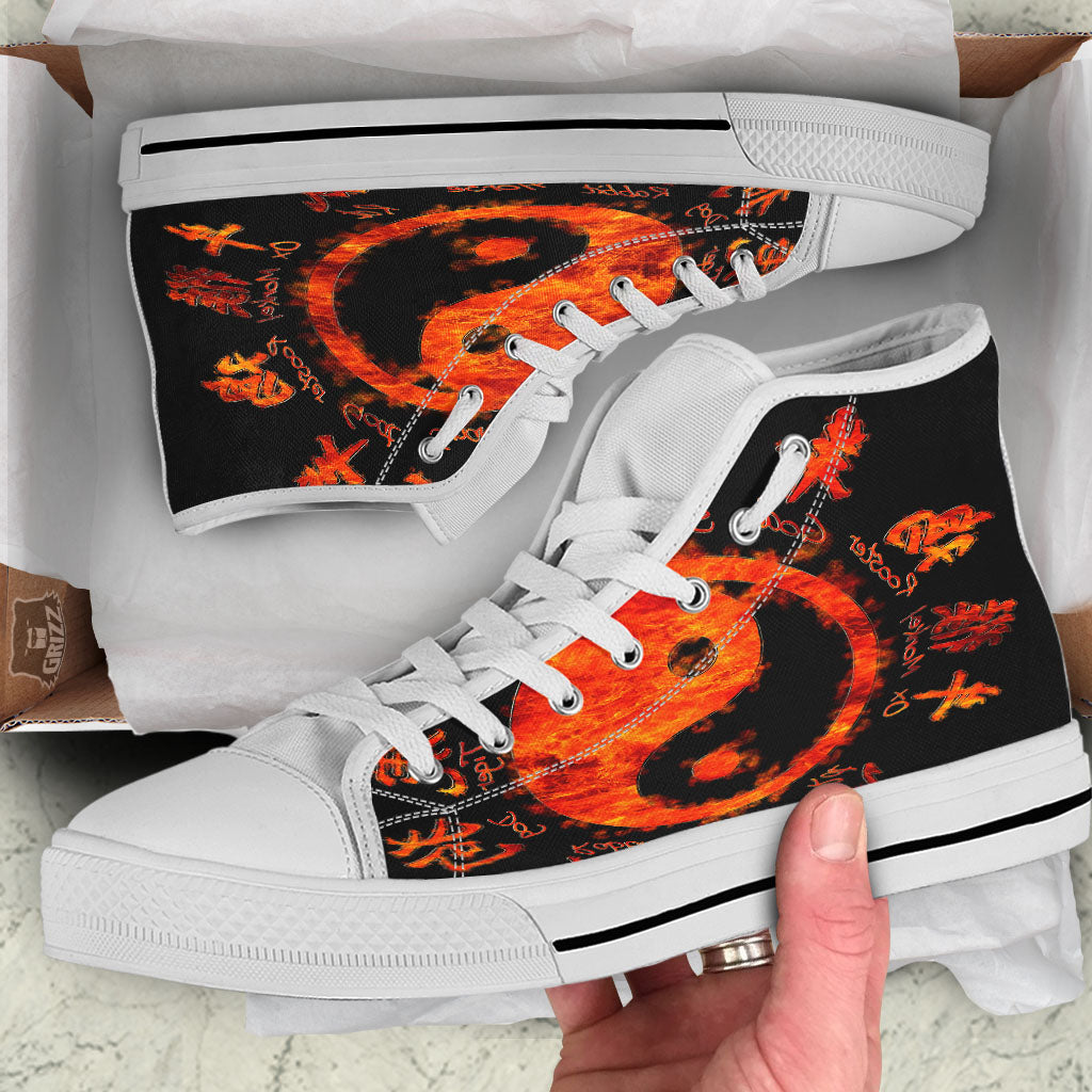Chinese Zodiac Fire Yin Yang Print White High Top Shoes
