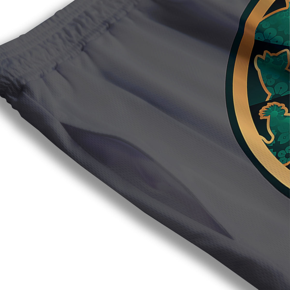 Chinese Zodiac Gold And Green Print Mesh Shorts