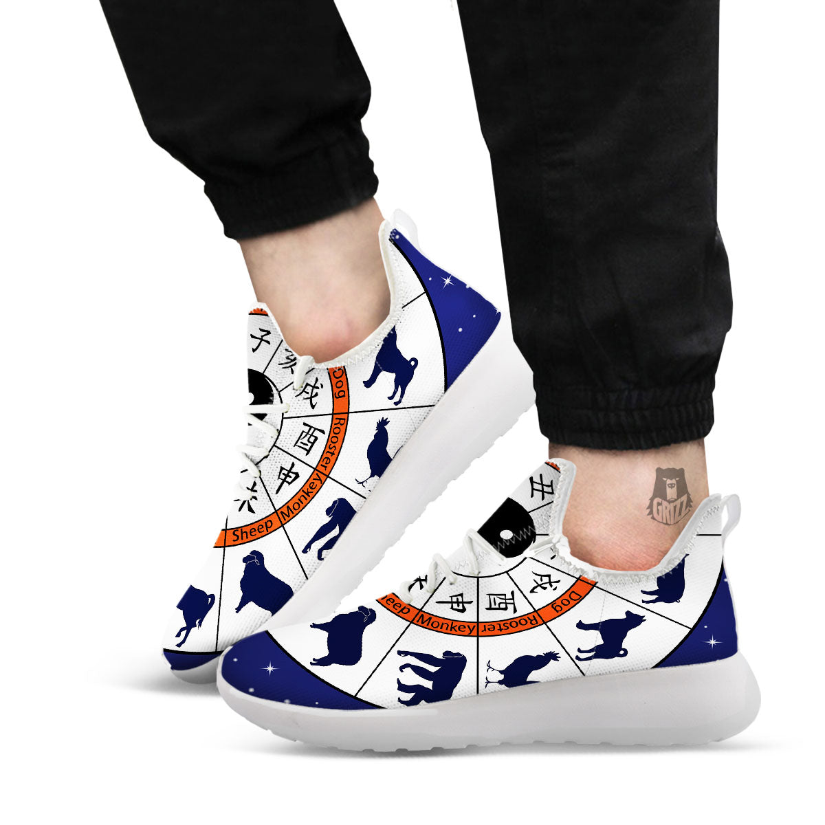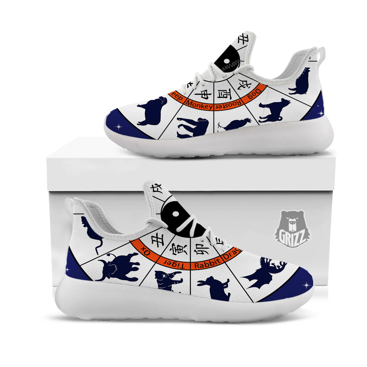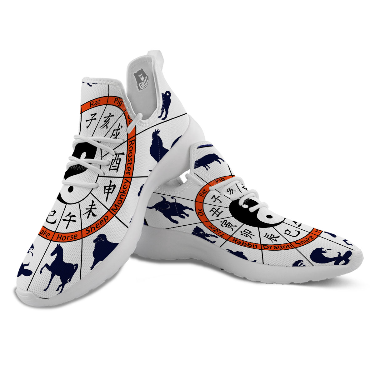 Chinese Zodiac Signs Yin Yang Print White Athletic Shoes