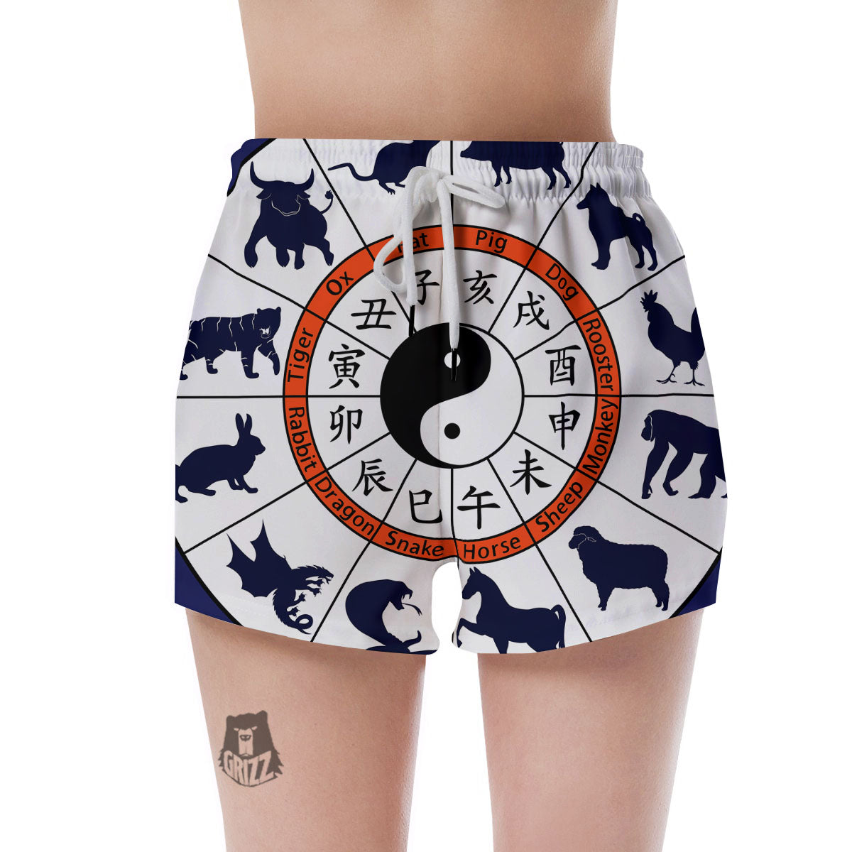 Chinese Zodiac Signs Yin Yang Print Women's Shorts