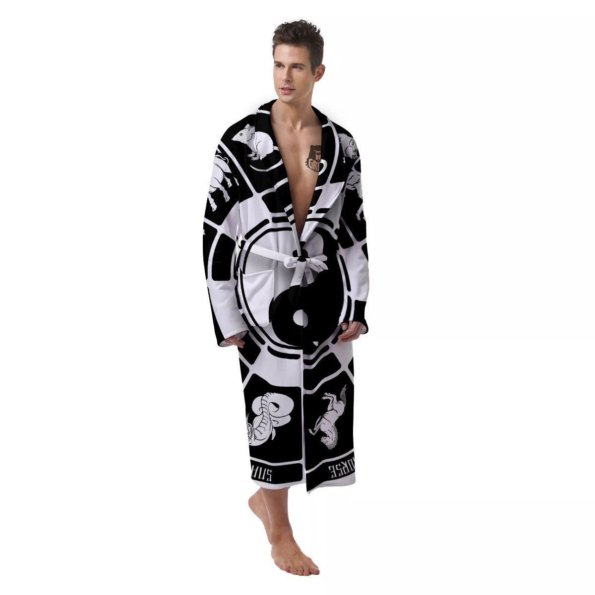 Looking for a unique robe? Check out our Chinese Zodiac White And Black Print Men's Robe at Grizzshopping. Our robe are handcrafted to the highest quality standards that custom made for you